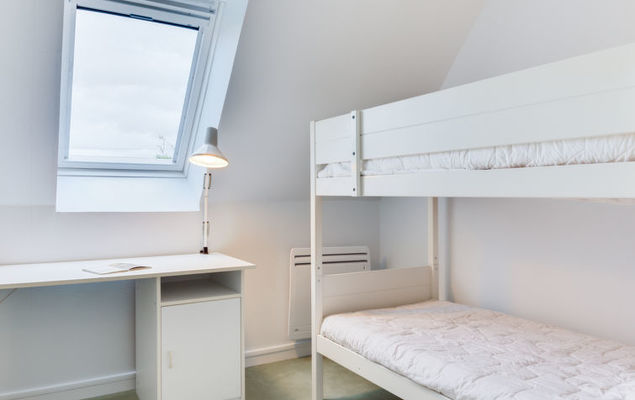 Huis in een rij 3-kamers 77 m2 op 2 verdiepingen. Woon-/eetkamer met TV en DVD. Uitgang naar de veranda. Open keuken (afwasmachine, 3 keramische glas kookplaten, broodrooster, magnetron, elektrische koffiemachine). Douche/WC. Elektrische verwarming. Bovenverdieping: 1 kamer met 1 2-pers bed (160 cm, lengte 200 cm). 1 kamer met 1 x 2 stapelbedden (90 cm, lengte 190 cm). Tuin 300 m2. Terrasmeubelen, ligstoelen (2). Ter beschikking: strijkijzer, kinderstoel, haardroger. Internet (Internet (WiFi), extra). Parkeerplaats nr. 117. Let op: rookmelders.