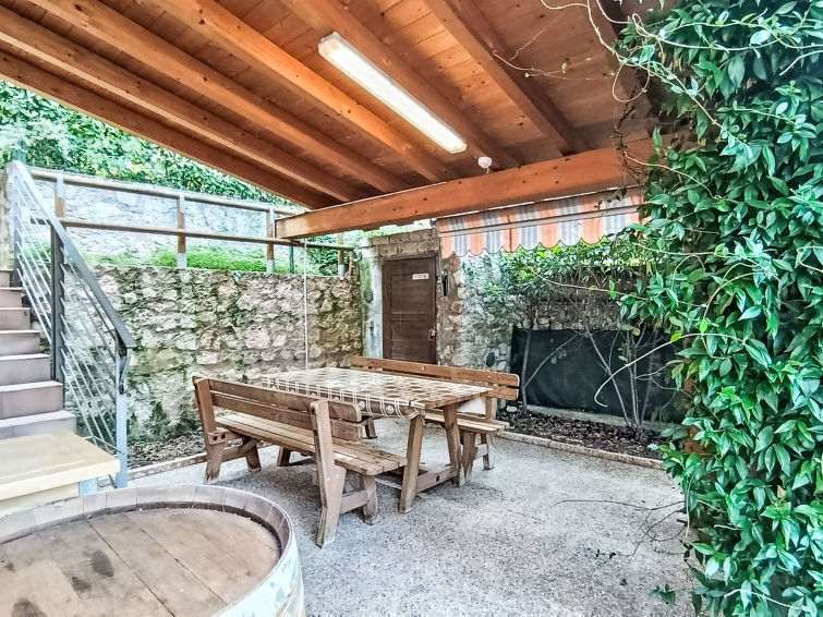 Malcesine: Gezellige, rustieke villa "Consolini", vrijstaand. In het centrum van Malcesine, op een heuvel, perfecte locatie: in het centrum en toch rustig gelegen, 700 m van het meer, 700 m van het strand, op het zuidoosten. In het huis: bergruimte voor fietsen, berging voor ski's. Wissel van linnengoed 1 maal per week (extra wissel te betalen). Wissel van handdoeken 1 maal per week (extra wissel te betalen). 1 maal per week schoonmaak op verzoek (extra). Parkeerplaats (voor 2 auto's) bij het huis. Centrum te voet bereikbaar in 5 minuten, bushalte 500 m, kiezelstrand 700 m, meer (zwemmen) "Lago di Garda" 700 m. Autobaan 36 km van het huis. Spoorweg 36 km van het huis.