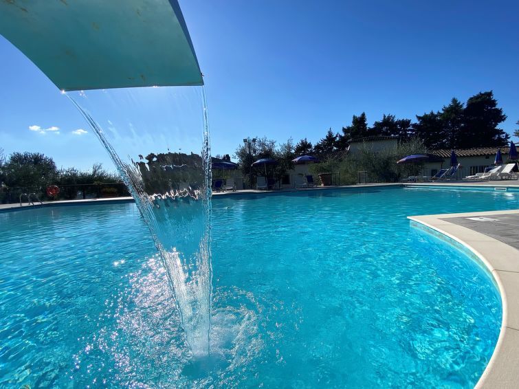 Appartement 3-kamers 50 tot 55 m2. Woon-/eetkamer met 1 2-pers divanbed en Sat-TV. 1 2-pers. kamer. 1 kamer met 2 bedden. Kookhoek (Gasfornuis, 4 kookpitten (vlammen)). Douche/bidet/WC. Gas-verwarming. Klein terras, kleine zithoek in de tuin. Ter beschikking: kinderbed tot 2 jaar. Internet (WiFi, gratis). Maximaal 1 huisdier/hond toegestaan. De beschrijving betreft een voorbeeld van dit type woning in dit complex. IT048032B5FCJWV7PS