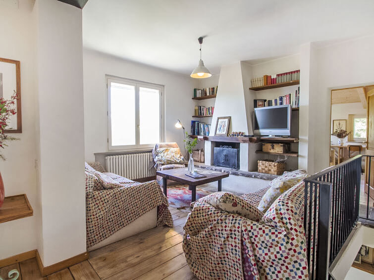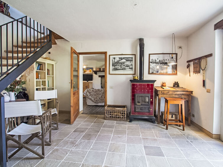 " Paradiso", villa 7-kamers 300 m2 op 2 verdiepingen, op de begane grond. Zeer mooi en smaakvol ingericht: hal met tegelkachel. Uitgang naar de tuin. Groot woon-/eetkamer met open haard, TV, Flatscreen TV en verwarming. Uitgang naar de tuin. Woon-/slaapkamer met 1 x 2 stapelbedden, 1 2-pers bed, kookhoek, bad/bidet/WC, verwarming en air-conditioning. Uitgang naar de tuin. Woonkeuken (5-pits kookplaat, oven, afwasmachine, magnetron, diepvriezer) met open haard, eettafel en TV (Flatscreen TV), houtkachel. Uitgang naar de loggia. Douche/bidet/WC. Bovenverdieping: groot woon-/eetkamer met open haard, TV en Flatscreen TV. 1 2-pers. kamer met douche/bidet/WC, TV, Flatscreen TV en air-conditioning. Uitgang naar de tuin. 1 2-pers. kamer met Kleedkamer. 1 kamer met 2 bedden, TV, Flatscreen TV en air-conditioning. Uitgang naar de tuin. Bad/bidet/WC, hydro massage bad. Houtverwarming, verwarming met zonne-energie. Houten vloeren, natuurstenen vloeren. Panoramazicht op het dal. Ter beschikking: wasmachine, klamboe, haardroger. Internet (Internet (WiFi)). Oplaadstation. 1 klein huisdier/hond toegestaan. De woonkamer met een tweepersoonsbed op de tussenverdieping, een stapelbed, een kitchenette en een badkamer, bevindt zich in het mooie en gezellige bijgebouw in de tuin op slechts enkele meters van het zwembad. Indien het huis voor zes personen wordt geboekt, wordt het bijgebouw uitgesloten van de huurprijs. Smart TV beschikbaar in het hoofdgebouw. Als er minder dan het maximale aantal gasten in de accommodatie verblijft, is het bijgebouw niet beschikbaar voor gebruik. IT054039C204033329