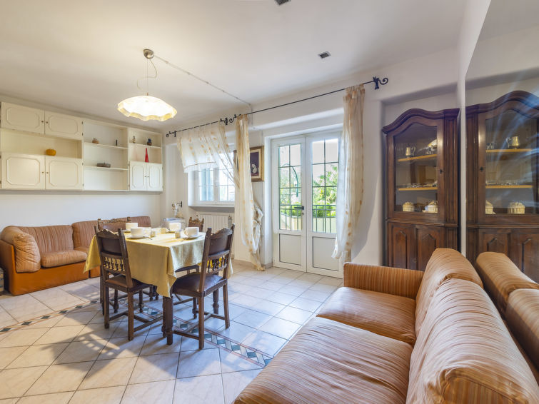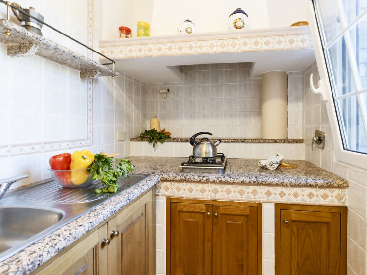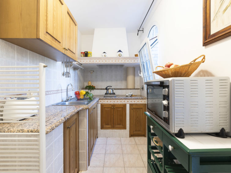 "Casetta Rosa", appartement 3-kamers 70 m2. Smaakvol ingericht: hal. Woon-/eetkamer. 1 kleine kamer met 2 bedden. 1 open 2-pers. kamer, zonder ramen. Kleine keuken (2-pits kookplaat, magnetron, diepvriezer). Douche/bidet/WC. Gas-verwarming (extra). Verwarming alleen beschikbaar van 01.11. tot 31.03. Terras 20 m2. Terrasmeubelen, ligstoelen (2). Ter beschikking: haardroger. Internet (Internet (WiFi), gratis). Vanuit de kamer met 2 bedden alleen toegang tot de badkamer via de kamer met 2-pers bed. IT008031B59E8GI29N