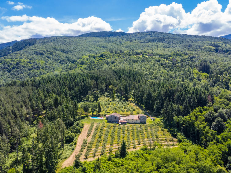 Zeer panoramisch gelegen boven de vallei, 's nachts zijn zelfs de lichten van Florence zichtbaar. Elke 30 minuten vertrekt een trein naar Florence vanuit Pontassieve, waar ook een gratis parkeerterrein is. Het zwembad is omheind, ideaal voor families. Alle appartementen beschikken over een buitenruimte met terrasmeubelen in de tuin. In het eerste gebouw wonen de eigenaren en in het tweede zijn 4 zelfstandige appartementen gerealiseerd. De gebouwen staan midden op een stenen plein, omringd door een bos met sparren en kastanje- en pijnbomen. Hier bevinden zich talrijke wandel- en fietspaden (mountainbike). Zeer oud landhuis "Certina", 510 m boven zeeniveau, gerenoveerd, omgeven door bomen. 13 km van het centrum van Pontassieve, 30 km van het centrum van Firenze, rustige, verhoogde ligging op een heuvel, te midden van groen. Voor medegebruik: terrein 33 ha, tuin, openluchtzwembad omheind (6 x 12 m, 130 - 160 cm diepte, seizoensgebonden beschikbaarheid: 06.Mei. - 23.Sep.) met trap. Buitendouche, barbecue. Voor alleengebruik: terras, tuinmeubelen. In het huis: centrale verwarming, wasmachine (voor medegebruik), Verwarming ter plaatse te betalen, verwarming alleen beschikbaar van 01.Nov. - 07.Apr.. Wissel van linnengoed 1 maal per week. Schoonmaak op verzoek (extra). Toegangsweg tot aan het huis (1 km onverharde weg). Parkeerplaats bij het huis. Winkel 5 km, restaurant 7 km, bushalte 4.7 km, treinstation "Pontassieve" 13 km.